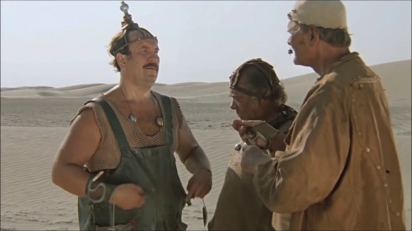 Nadat ze op een knop van een vreemd apparaat in de handen van een alien hebben gedrukt, bevinden twee mensen zich per ongeluk op een andere planeet. Plyuk in het sterrenstelsel Kin-Dza-Dza ziet er uit als een woestijn. Alle aliens lijken precies op gewone mensen en kunnen gedachten lezen. Daarom is hun taal beperkt tot een paar woorden.