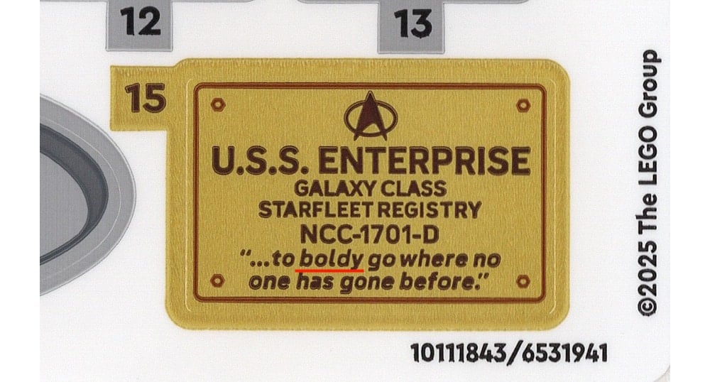 LEGO beloofde beterschap, maar de eerste vervangende sticker zorgde voor nieuwe frustraties. Hoewel de tekst was gecorrigeerd, klopte het Starfleet-logo niet en ontbraken er details. Het bedrijf zag zich genoodzaakt om opnieuw naar de tekentafel te gaan.